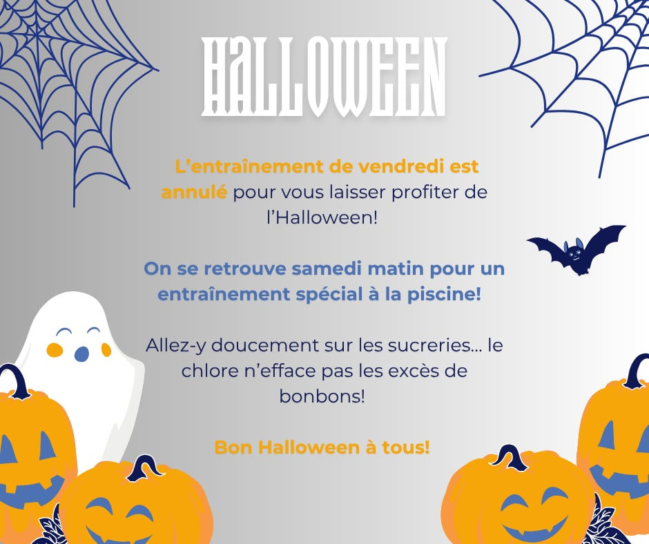L’entraînement du vendredi 31 octobre est annulé pour vous laisser profiter de l’Halloween.