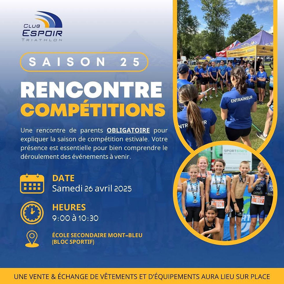 📌Nous y présenterons la vision du Club, l’organisation et les finances, le calendrier de la saison, ainsi que des informations importantes sur les Jeux du Québec et le Triathlon de Gatineau.